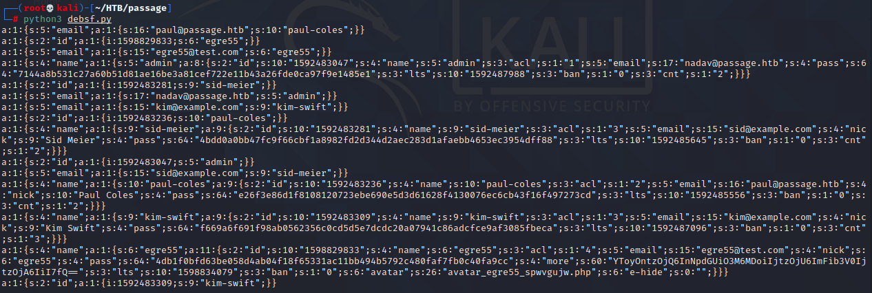 Not so common for HTB machines, there are two user accounts, paul & nadav. Now it's time to enumerate. There were lots of users posting entries to that blog, their password hashes must be in this directory somewhere. I decide I'm gonna use my own dummy name as a canary to find where these hashes are - no luck.