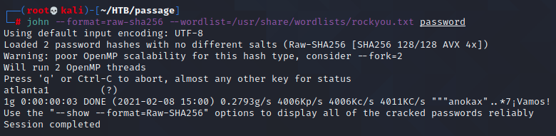I'm glad to see my friends Paul and Nadav among the users here. Identifying the hashes in hash-identifier as SHA256, I save the hashes in a separate file and see what John can do.