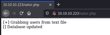 Who are these users? What's this database? Well, clearly the sator PHP file's still here, so maybe the backup Neil mentioned is, too. A visit to "10.10.10.223/sator.php.bak" allows me to download the source code behind the live PHP file.